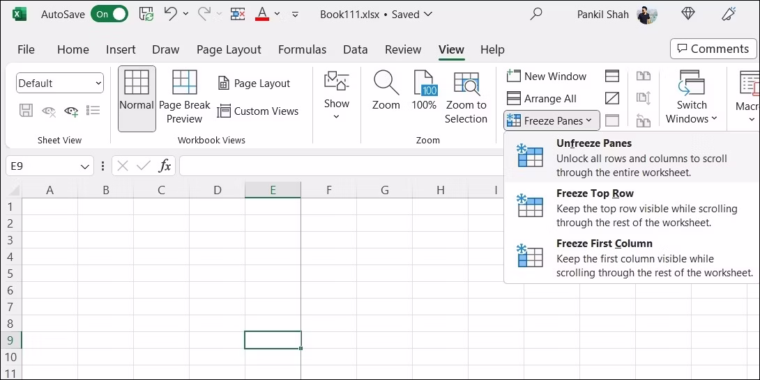 Microsoft Excel 允许您冻结工作表的特定部分,以便即使您滚动工作表时它们仍然可见。这可能会造成您的 Excel 工作表未正确滚动的错误印象。为避免任何混淆,您可以按照以下步骤解冻工作表中的窗格。