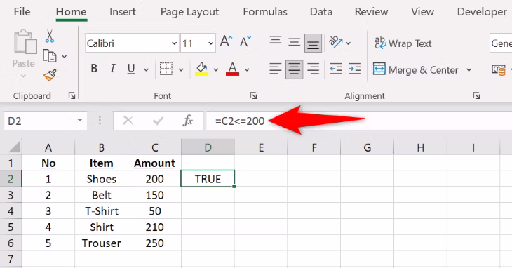 当您使用小于或等于运算符时,如果单元格的值小于或等于您指定的值,Excel 将检索 TRUE 结果。如果单元格值高于您指定的值,运算符将返回 FALSE 结果。