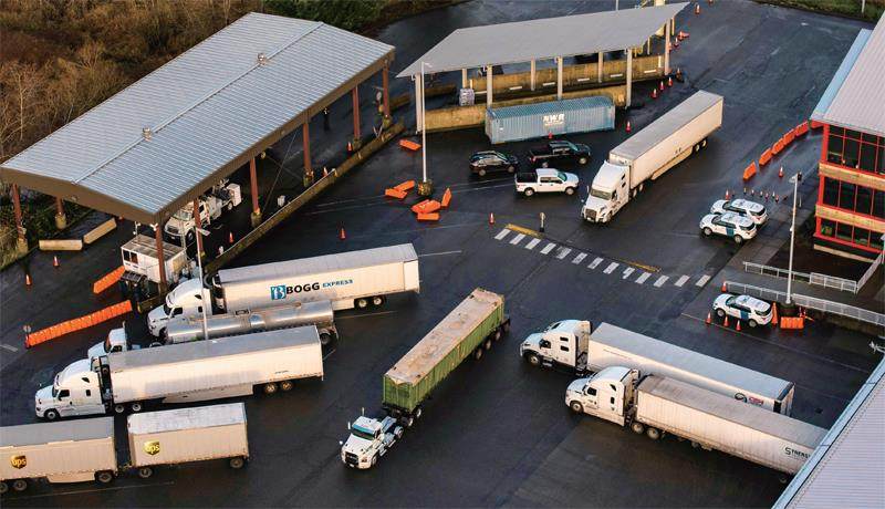 2024年12月18日,美加边境口岸,货车排队等待过境