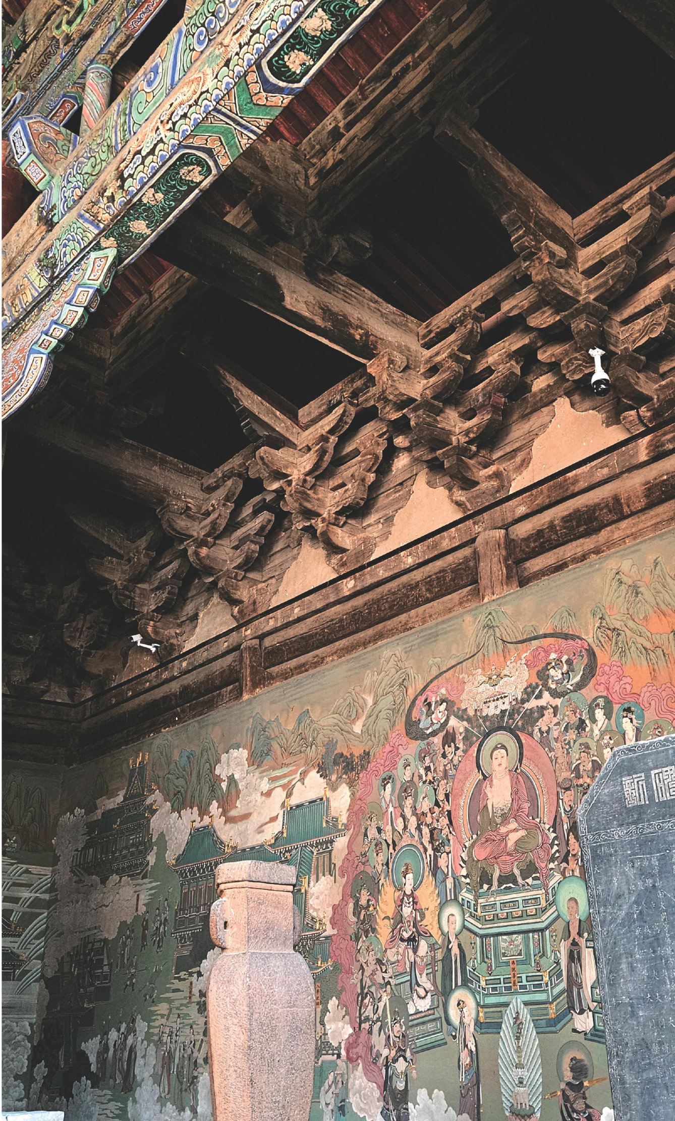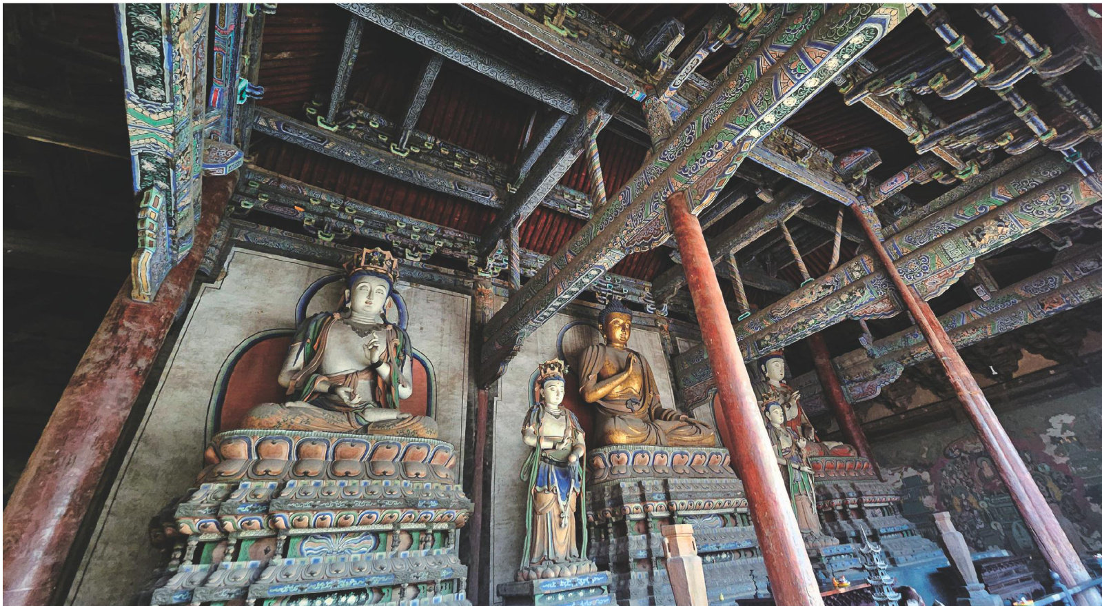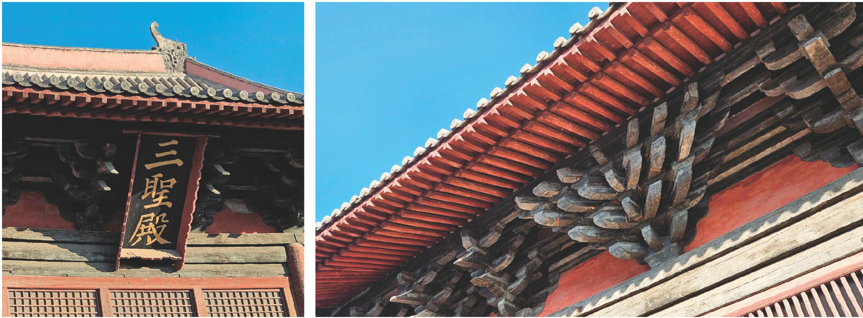 从三圣殿的“移柱减柱法”可以看出,匠人们在不影响整体结构稳定性的前提下,通过精心设计和巧妙建造,使殿内空间得到了有效拓展,这就使得殿内的光线比较充足,空气流通比较顺畅,为信众们提供了一个比较安逸、祥和的礼佛环境。这种处理方式不仅充分展现了古代匠人对建筑力学原理的精妙掌握,还凸显了他们卓越的技艺与建筑设计的独特匠心。