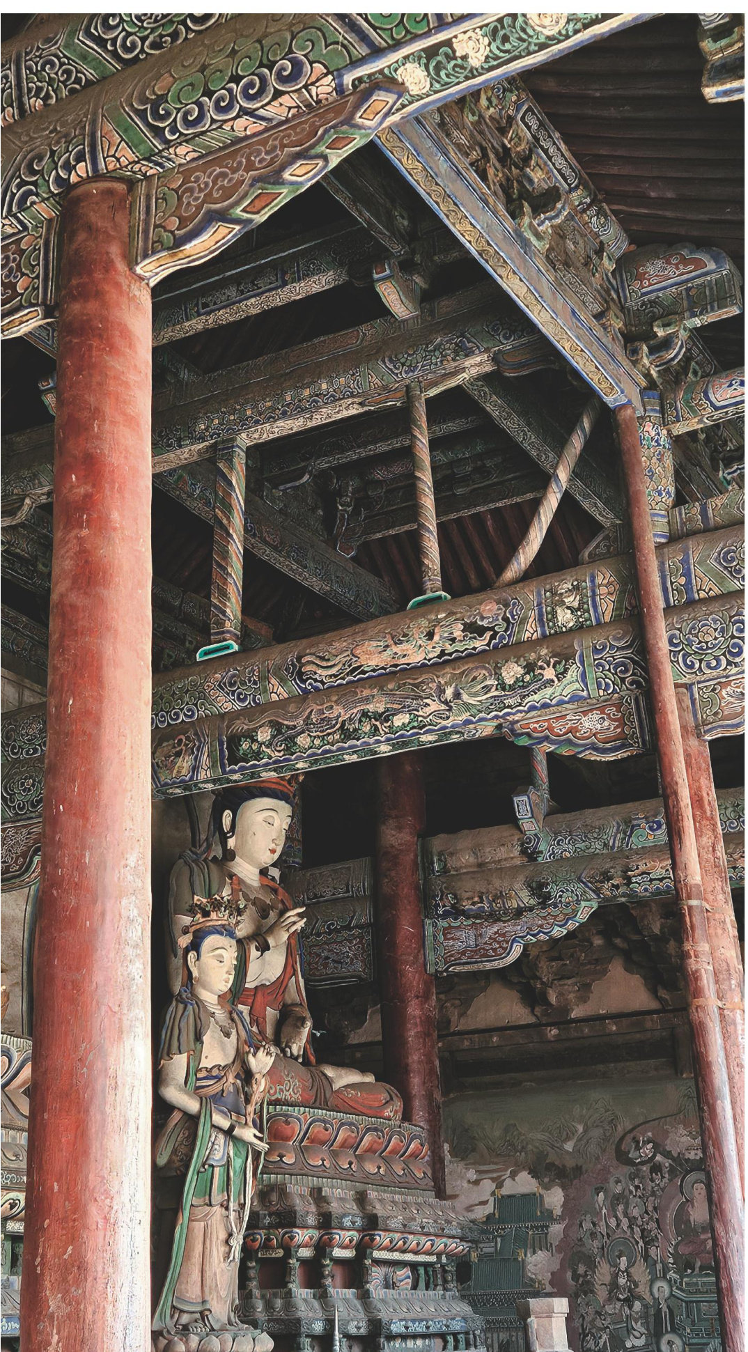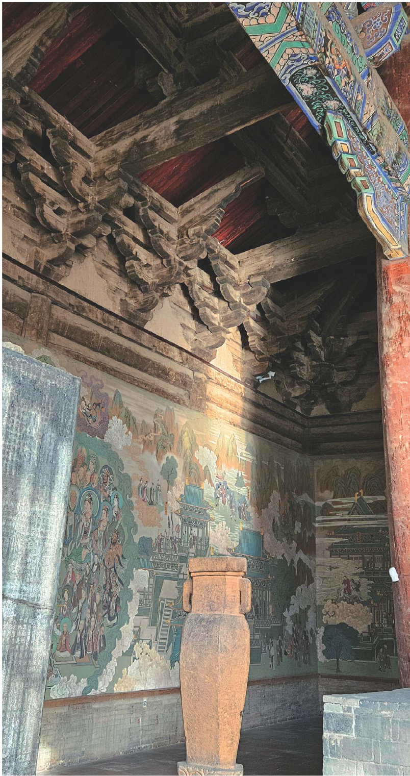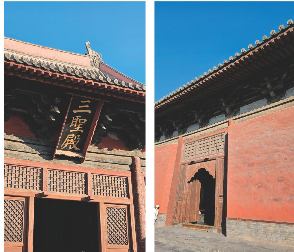 从三圣殿的“移柱减柱法”可以看出,匠人们在不影响整体结构稳定性的前提下,通过精心设计和巧妙建造,使殿内空间得到了有效拓展,这就使得殿内的光线比较充足,空气流通比较顺畅,为信众们提供了一个比较安逸、祥和的礼佛环境。这种处理方式不仅充分展现了古代匠人对建筑力学原理的精妙掌握,还凸显了他们卓越的技艺与建筑设计的独特匠心。