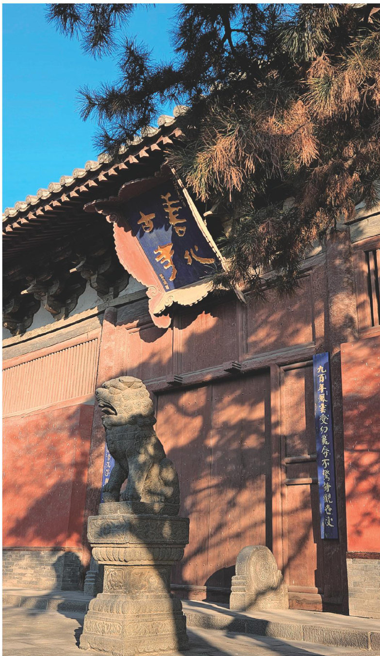 现存规模最大、最完整的辽金建筑群就是山西大同的善化寺,是国务院公布的第一批全国重点文物保护单位。这座承载着千年历史的古老寺庙,据寺内三圣殿中完整保存的金大定十六年(1176年)《大金西京大普恩寺重修大殿记》(也称金碑、朱弁碑)记载:“按寺建于唐明皇时,与道观皆赐开元寺之号。”也就是善化寺在唐代开元年间(713一741年)名为“开元寺”,当时是一座规模宏大、气势恢宏的国立寺院。随着历史的车轮滚滚向前,五代后晋时期,它更名为“大普恩寺”,继续作为佛教圣地,吸引着无数信徒前来朝拜。辽末保大二年(1122年),作为兵家必争之地的大同,因两次被金兵攻占导致全城惨遭破坏,寺院也未能幸免于难。根据寺内的金碑记载:“楼阁飞为埃坌,堂殿聚为瓦砾,栋宇所存者十不三四。”不久,这座古寺又沦为金兵屯营之地。寺院经此劫难,此前的建筑样式已所剩不多。幸运的是,在金太宗天会六年 (1128年),由圆满法师组织重建了这座已被战争摧毁的寺庙,使其得以重生。此后,明正统十年 (1445年),明英宗赐予该寺“善化”之名,寓意佛法如流水,能够净化万物,使人心生欢喜。自此以后,“善化寺”这一名称沿用至今。