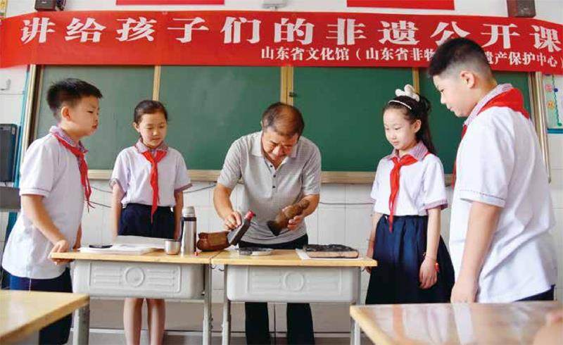 2022年7月7日,石桂利到山东省济南市莱芜区实验学校让孩子们亲身体验木版年画制作技艺,并给孩子们讲解年画的历史渊源和传承状况