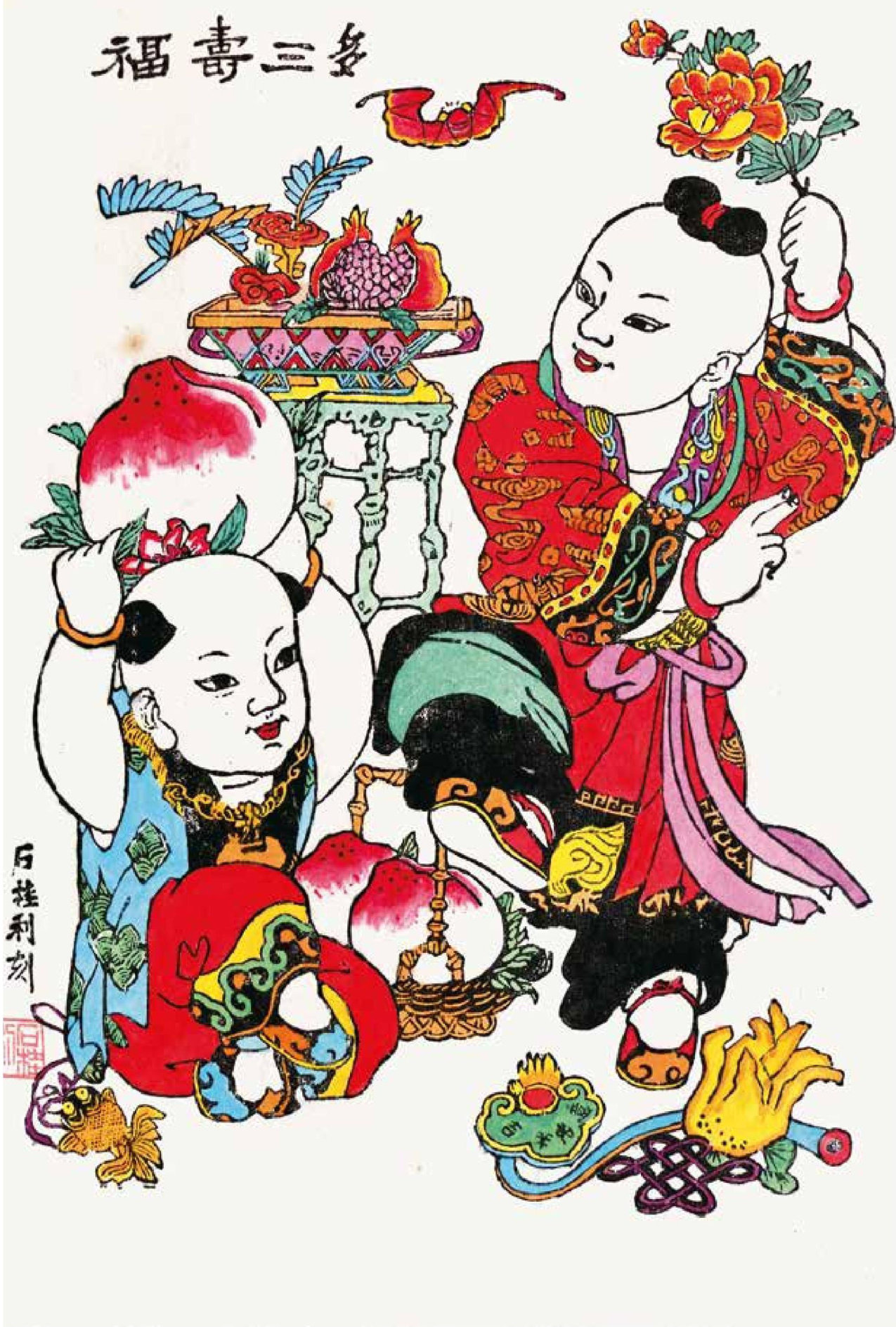 《福寿三多》高46cm,宽33cm