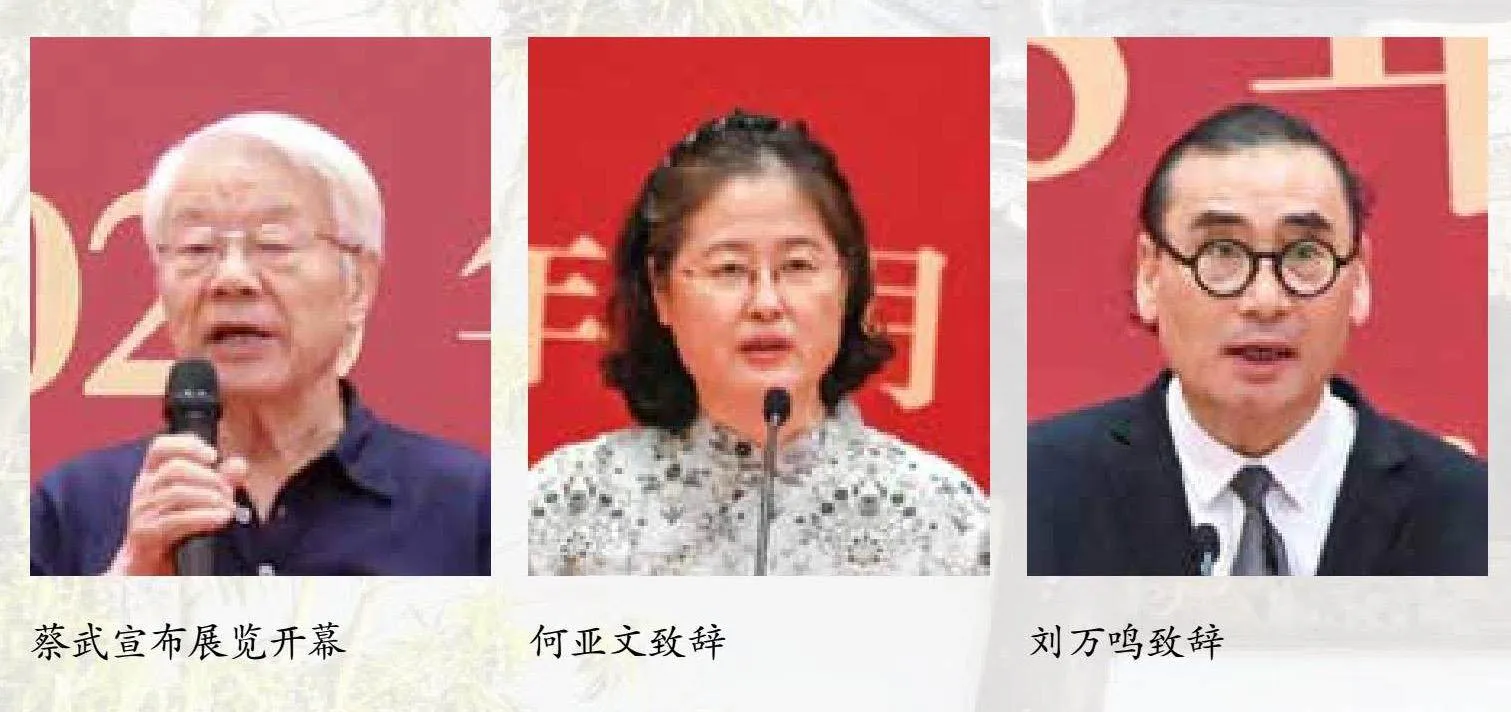 文化和旅游部艺术司副司长何亚文,中国国家画院院长、中国美术家协会副主席刘万鸣,中国艺术研究院院长、党委副书记周庆富,中国太平洋学会会长、原国家海洋局副局长张宏声,人民美术出版社社长李红强,中国文化艺术发展促进会主席、中国国家画院原院长杨晓阳,原江苏省文化厅副厅长、一级巡视员高云,分别致辞。开幕式由中国国家画院党委副书记、纪委书记王青云主持。