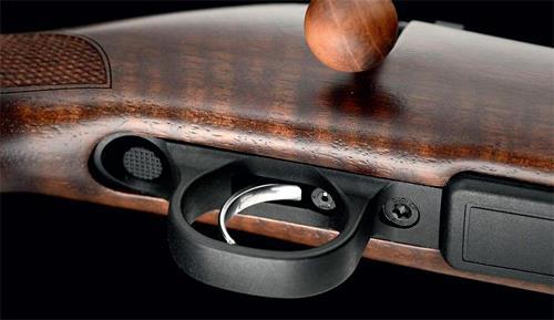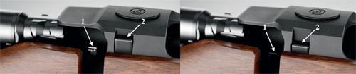CZ600 Plus步枪的贯通式手动保险设在机匣尾部,保险按钮的四周有一圈白色提示环。下按保险按钮为射击位置,向上推动为保险位置