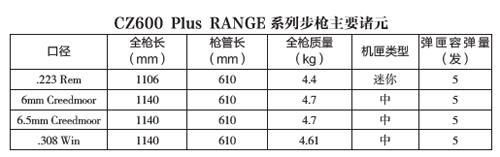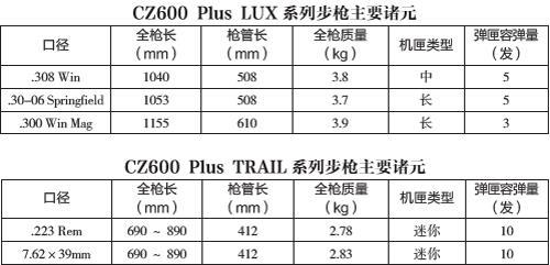 其他方面,CZ600Plus步枪与上一代CZ600步枪基本一致。根据不同型号,机匣采用铝制或不锈钢材质,并设有皮卡汀尼导轨或雷明顿M700规格的瞄准镜座安装螺钉孔。根据发射的枪弹种类,机匣又有迷你、中、长3种长度之分。