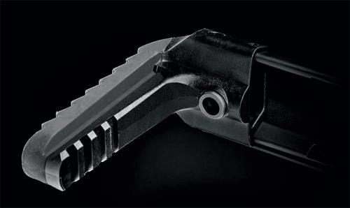 RANGE系列采用兼具美观舒适性的层压木枪托,枪托上设有可以调整高度的贴腮板,通过枪托右侧的旋钮调节贴腮板高度。枪托下方设有一段皮卡汀尼导轨,用于安装支撑脚架,帮助射手据枪。枪托后部设有橡胶缓冲垫。