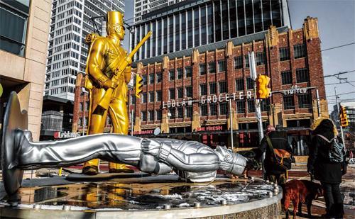 如果你从联合车站乘坐开往西海岸的列车,用不了几分钟就能透过左侧玻璃看到几栋建在草坪上的古老砖房,那就是当年的防御工事约克堡遗址。而在它南边,巴瑟斯特街和湖岸大道交叉口,还有一尊有趣的雕塑:一个站立的金色士兵与一个倒地的银色士兵,分别象征英加联军与美军,以生动的姿态定格了那场战争的结果。