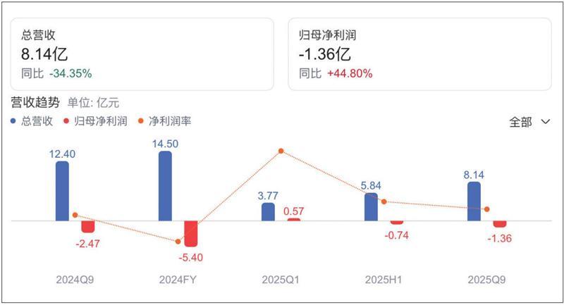 2025年,亏损继续。业绩预告显示,全年归母净利润预计亏损3.13亿元至4.42亿元。虽然亏损幅度同比收窄,但连续两年大额亏损,让市场对公司的现金流和持续经营能力产生担忧。
