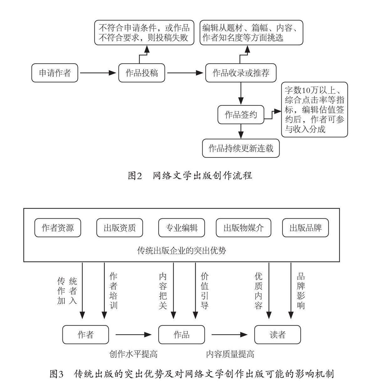 深耕出版几十余年,传统出版企业在内容生产、内容质量把关上不仅拥有一群专业的编辑团队,团结了大量的作家队伍,还有着丰富的内容判断与选择的经验,这正是网络社会海量内容时代为广大读者用户提供精品内容所须具备的能力。基于此,传统出版企业可以在网络文学的创作、出版与阅读环节积极参与(图3所示),达到提高优质网络文学内容供给的目的。当然,这种参与一定是基于充分尊重网络文学自身规律、融合传统出版优势的参与。
