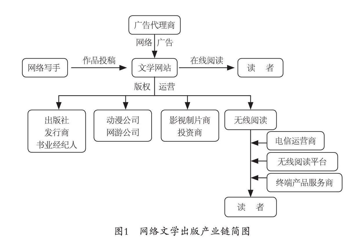 十余年的探索发展,网络文学产业运营模式逐渐成熟,一条由网络写手、文学网站、内容经纪人、出版商、影视投资商、游戏厂商、动漫公司,电信运营商、客户端产品制造商、广告代理商等组成的完整而复杂的产业链也已形成,并逐步形成了以作品版权为中心的运营模式,其盈利来源主要包括:1. VIP付费阅读收;2. 网络广告收入;3. 无线阅读运营收入;4. 线下出版、影视改编、动漫游戏改编等版权延伸收入。其中,VIP付费阅读和无线阅读运营是最重要的两大营收来源。随着移动互联网的飞速发展,手机等移动终端已成为网络文学阅读的重要载体。