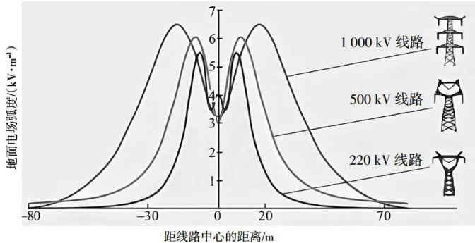 式中: E 为三相交流输电线路被干扰点场强, E1 和 E2 为三相导线无线电干扰中较大的两相。