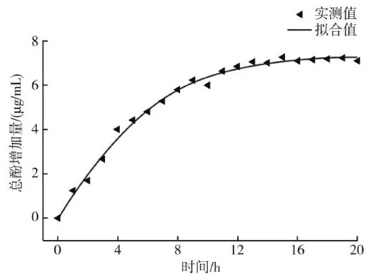 图6Boltzmann模型下总酚增加量变化拟合曲线 Fig.6Fittingcurve of total phenol increase amount changeunderBoltzmann model