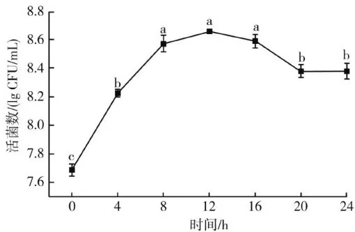 图1红枣汁发酵过程中活菌数变化 Fig.1 Changes of viable bacterial count of red jujube juiceduringfermentation