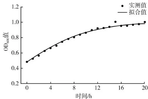图5Logistic模型下菌体生长拟合曲线 Fig.5Fittingcurveof bacterial growth underLogistic model