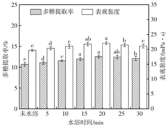图5水浴时间对铁皮石斛汁多糖提取率和表观黏度的影响 Fig.5Effects of waterbath timeon polysaccharideextraction rateandapparentviscosityofDendrobiumofficinale juice