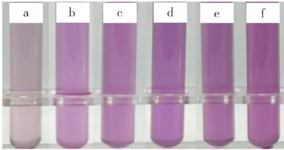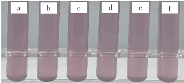 注: a{~f 分别表示水浴时间为5,10,15,20,25,30min。