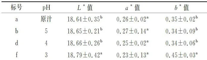 由表8可知,调酸后的铁皮石斛汁的亮度均比原汁的亮度大。当 pH⩾4 时,铁皮石斛汁的 L* 值、