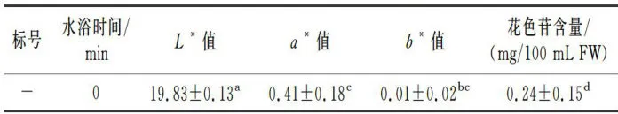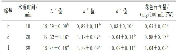 表5水浴时间对铁皮石斛汁色泽和花色苷含量的影响 Table5 Effects of water bath time on color and anthocyanin contentof Dendrobiumofficinalejuice