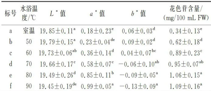 表4水浴温度对铁皮石斛汁色泽和花色苷含量的影响 Table4Effectsofwaterbath temperature oncolorand anthocyanin content of Dendrobiumofficinale juice