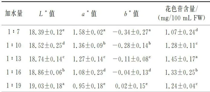 表3加水量对铁皮石斛汁色泽和花色苷含量的影响