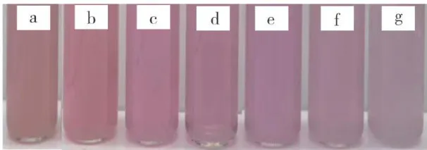 注: a~g 分别表示未水浴和水浴时间为10,15,20,25,30min 。