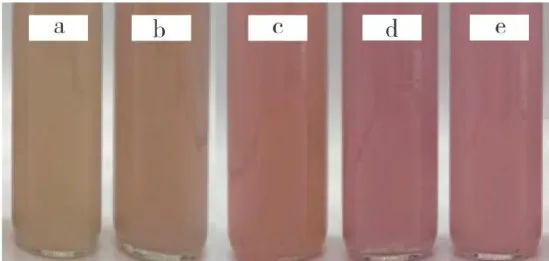 图8不同水浴温度下铁皮石斛汁外观图Fig.8Appearance diagram of Dendrobiumofficinalejuiceat different waterbath temperatures注: a~e 分别表示水浴温度为 50,60,70,80,90° 。