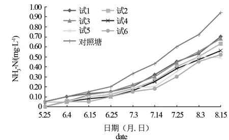 试验过程中氨氮、亚硝酸盐的水质检测结果见图1~图2。