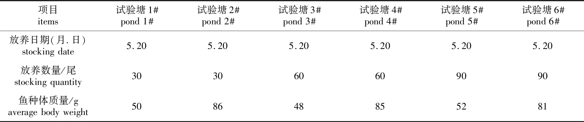 表1 2017年鲻鱼分组放养情况Tab.1 Stocking information of Mugil cephalus in 2017