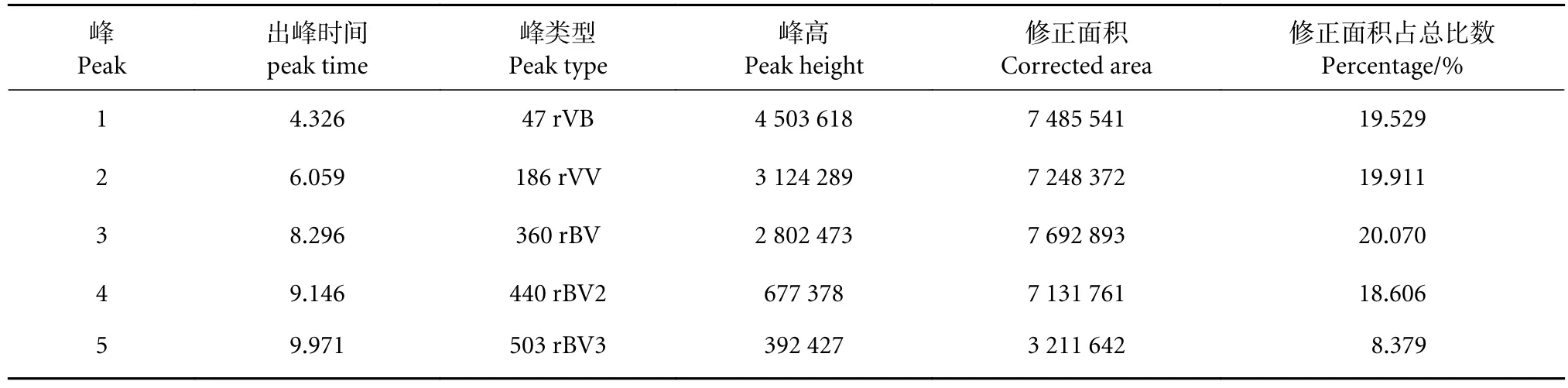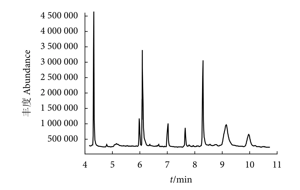 表1 总离子流图的具体峰参数Table 1 Specific peak parameters of total ion chromatogram