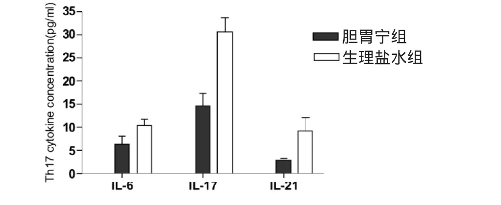 图1 胆胃宁下调胃粘膜Th17型细胞因子的浓度水平
