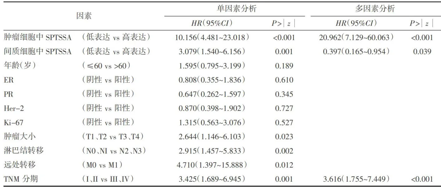 表2 Cox 回归分析SPTSSA与乳腺癌患者生存预后因子