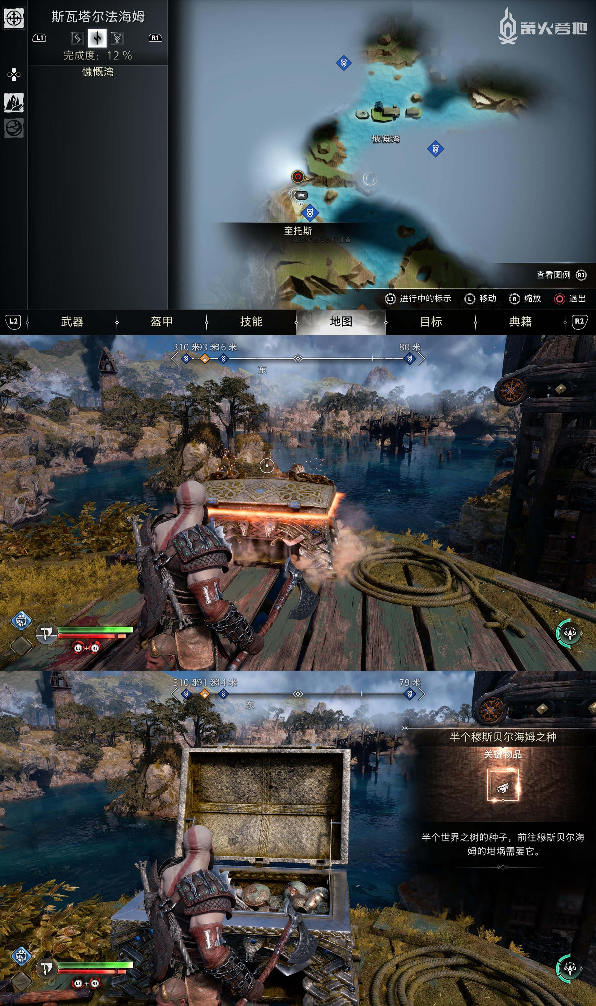 在「斯瓦塔尔法海姆 - 莫德维特尼尔的设备」,可以在下图位置找到「传奇宝箱」,获得「半个穆斯贝尔海姆之种」,触发支线任务「坩埚」。
