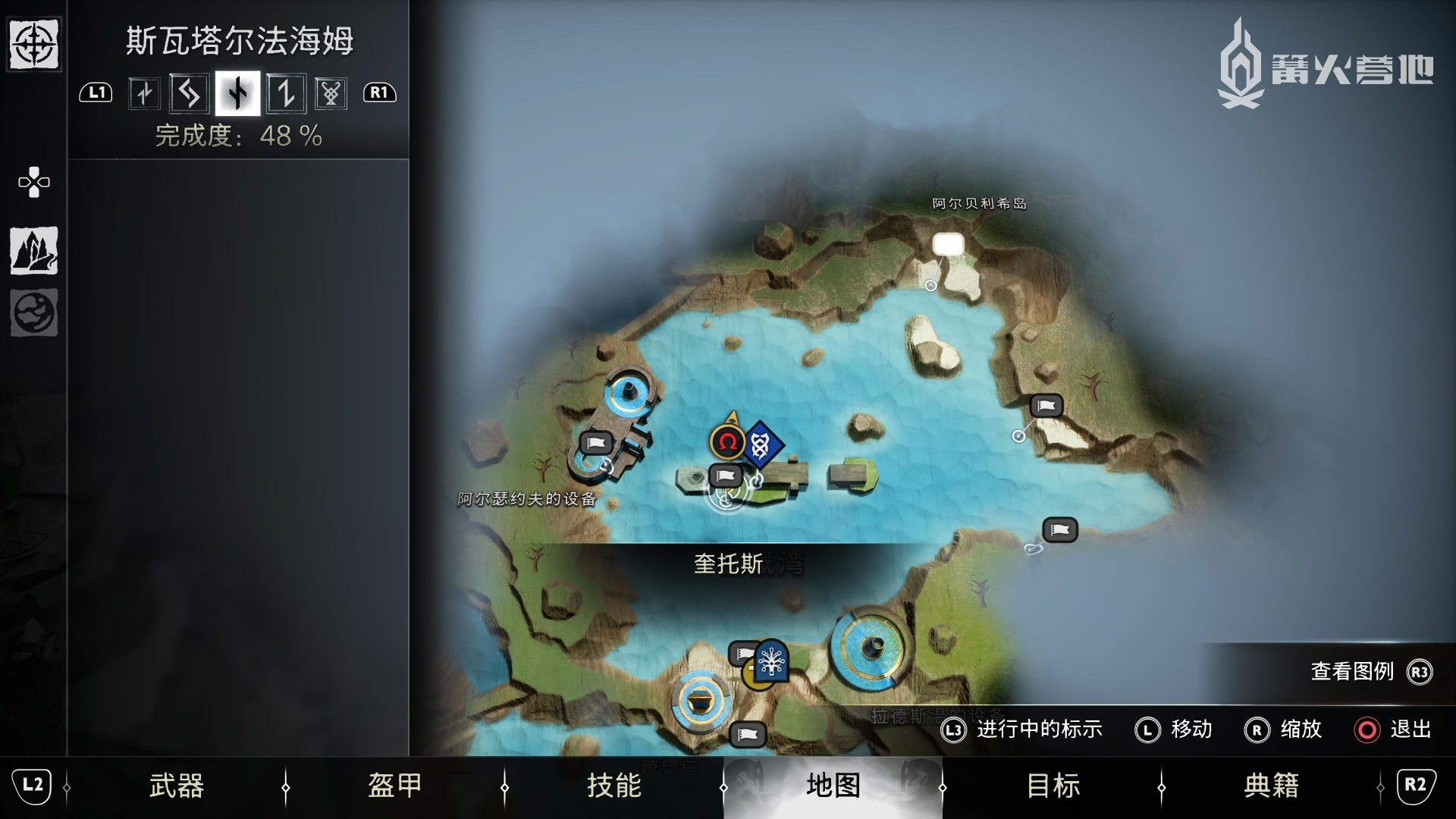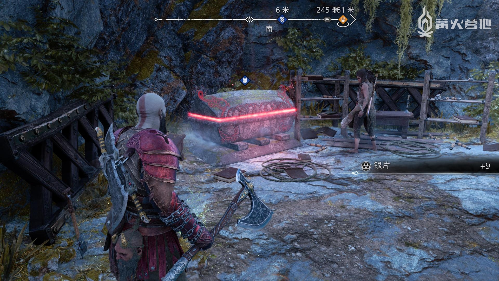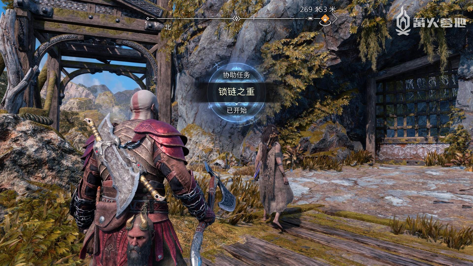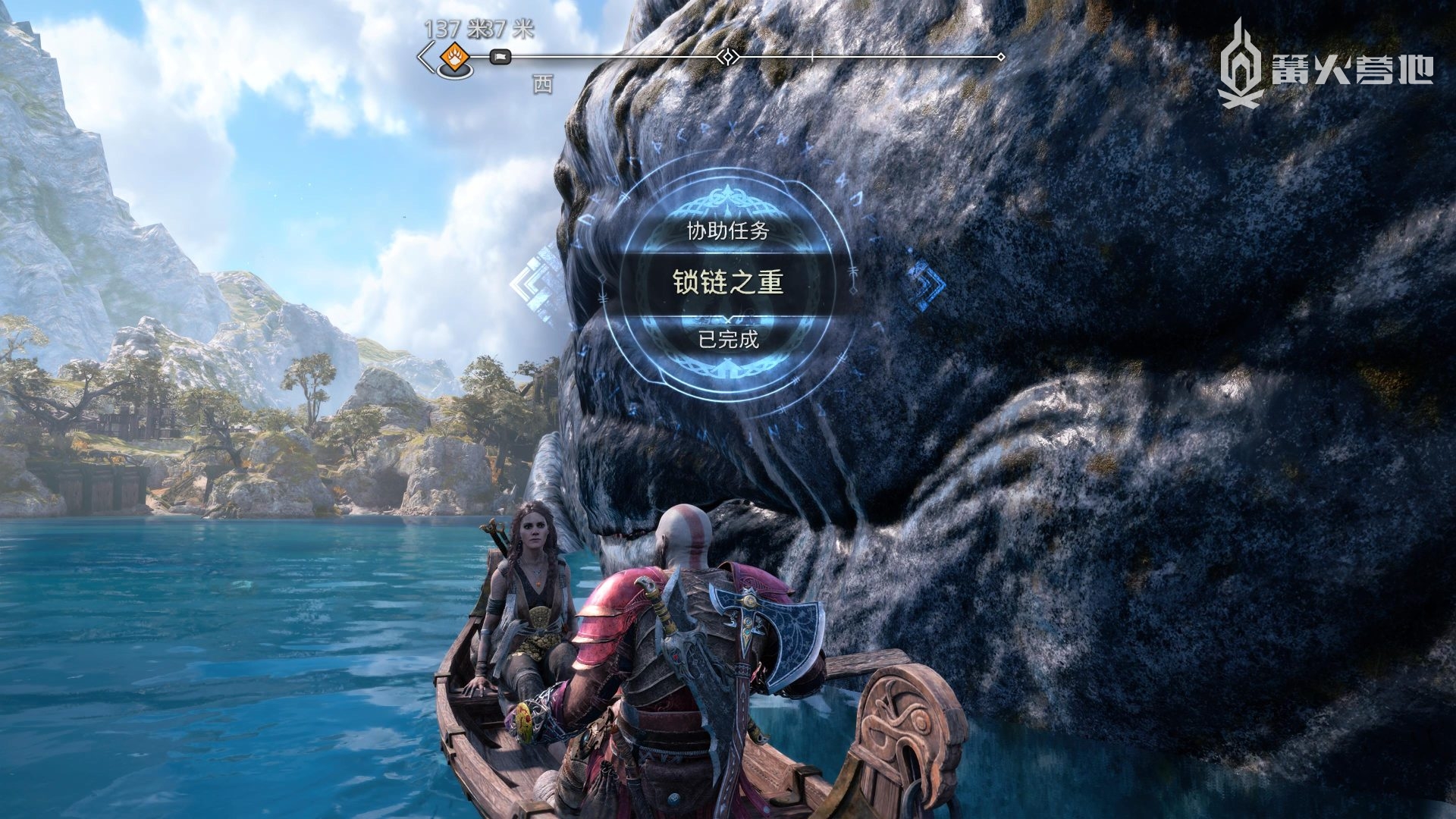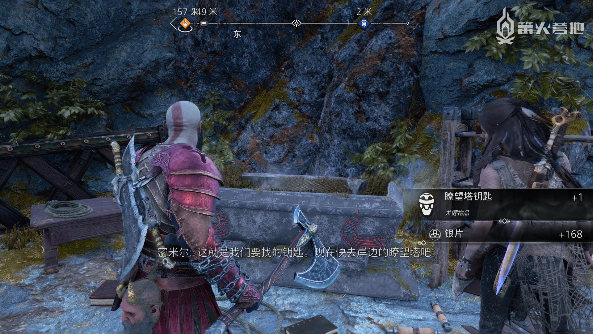 推进《战神 诸神黄昏》主线流程至来到斯瓦塔尔法海姆,在「斯瓦塔尔法海姆 - 瞭望塔」附近,密米尔会提到需要找一个钥匙来开启这里的门,来到下图位置下船,会自动触发支线任务「锁链之重」。通过侧身趴墙来到滚轮装置前,拉动装置并用斧子定住,然后再度趴墙进入升降梯,来到上层,就可以把地面的石板撞开,开启宝箱即可获得「关键物品 - 瞭望塔钥匙」。