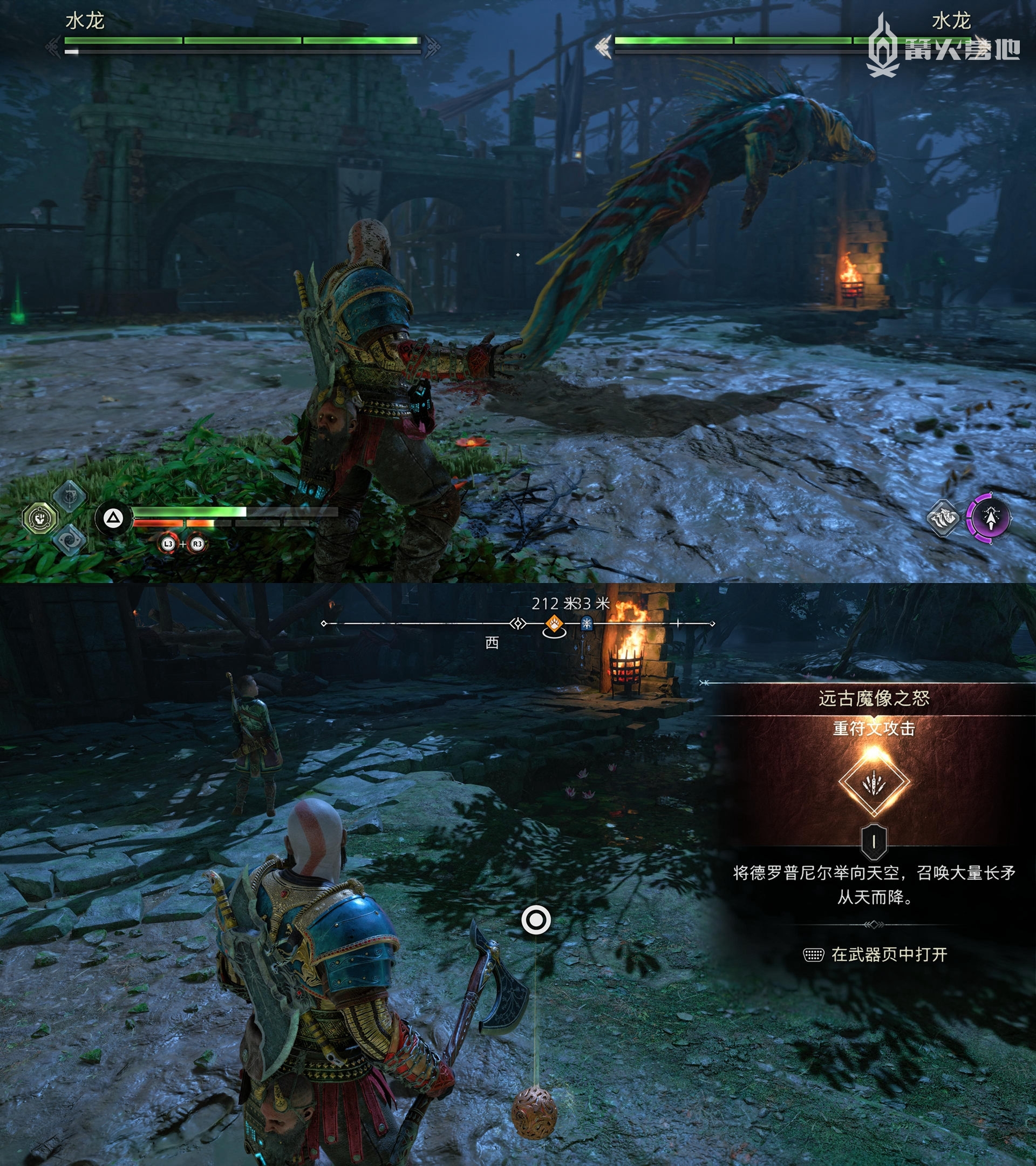 在「华纳海姆 - 弗雷的营地」,推进主线让双狼重新追逐日月,回程途中击败 Boss「水龙 x 2」,即可获得「重符文攻击 - 远古魔像之怒」。