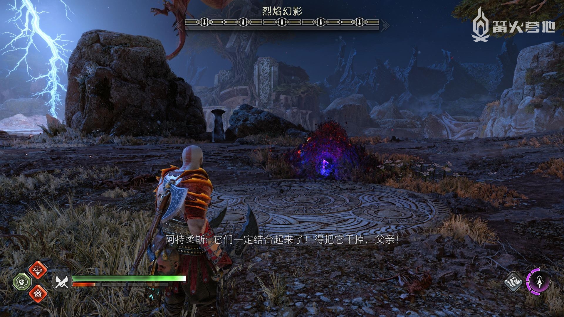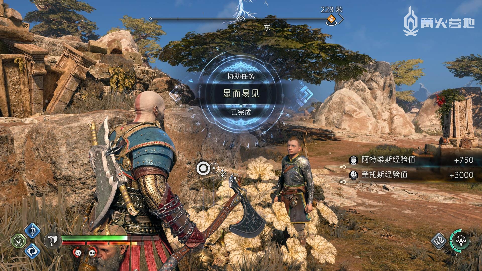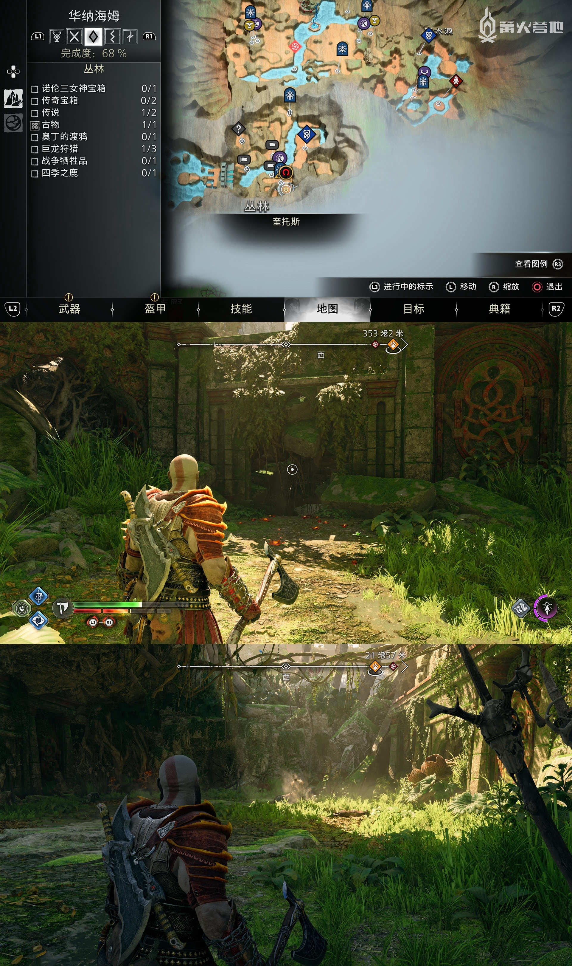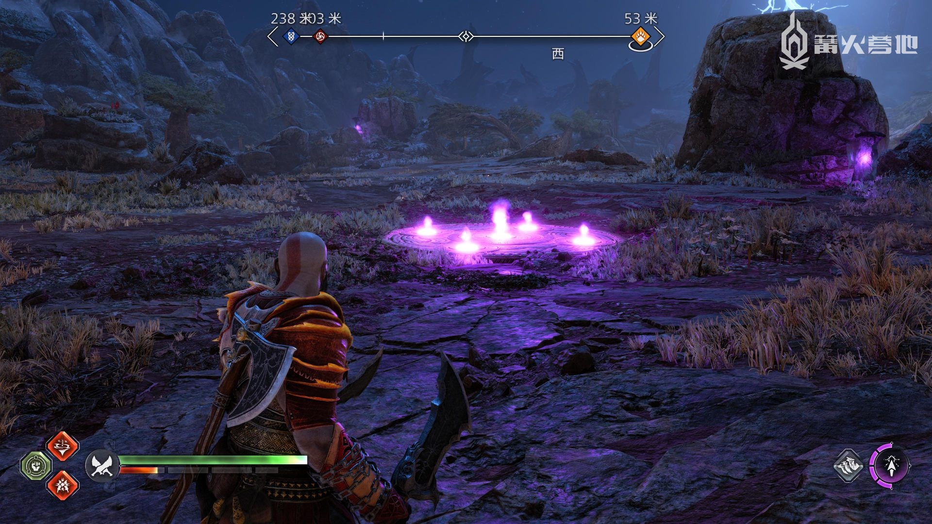 ① 推进《战神 诸神黄昏》主线流程至救出弗雷,并完成支线任务「幸存者的气味」后,会来到华纳海姆北边的全新大坑地图。在「华纳海姆 - 平原」,下图位置调查动物尸体会触发支线任务「显而易见」。