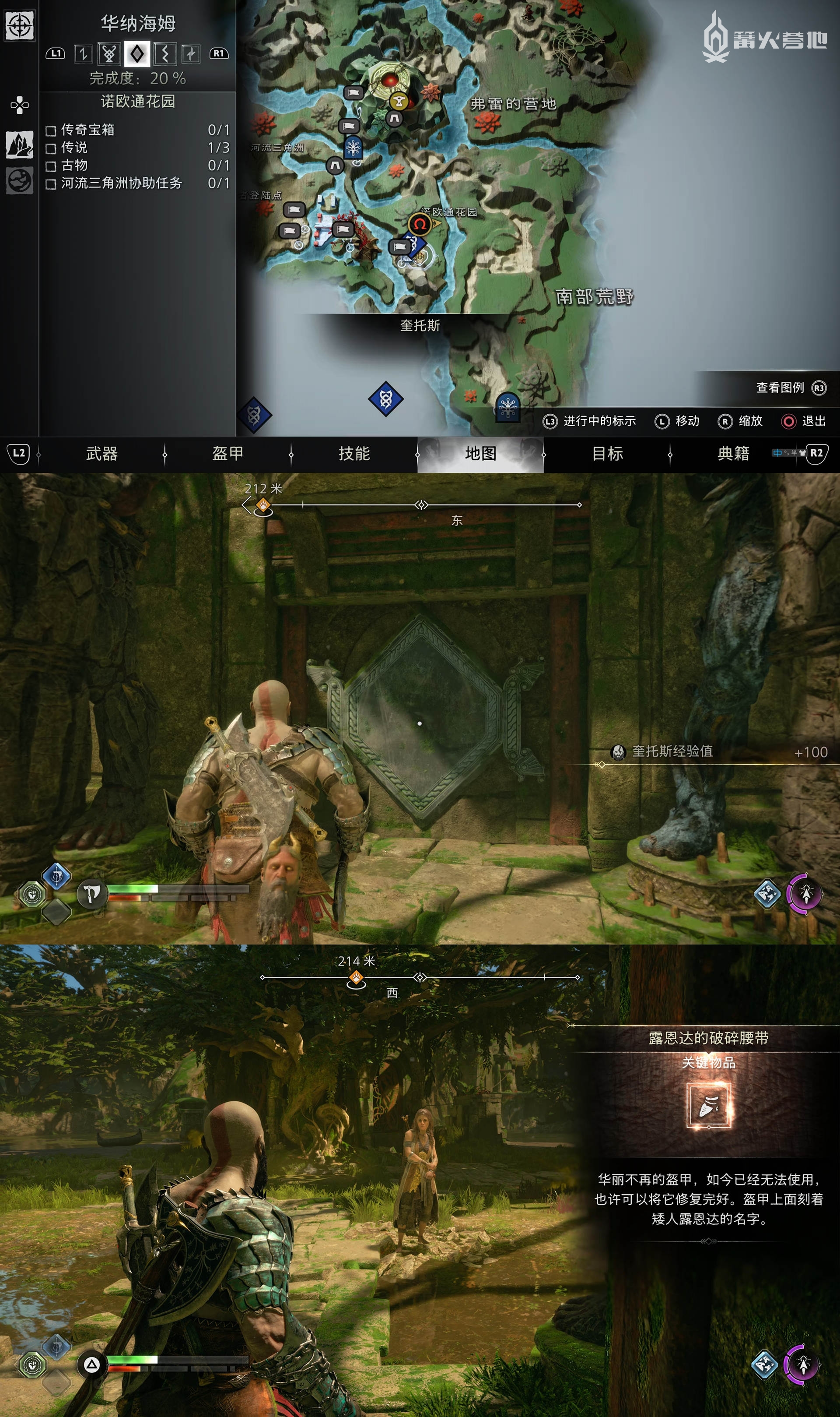 在「华纳海姆 - 诺欧通花园」,下图位置用凿子打开密室,箱子里有「关键物品 - 露恩达的破碎腰带」。