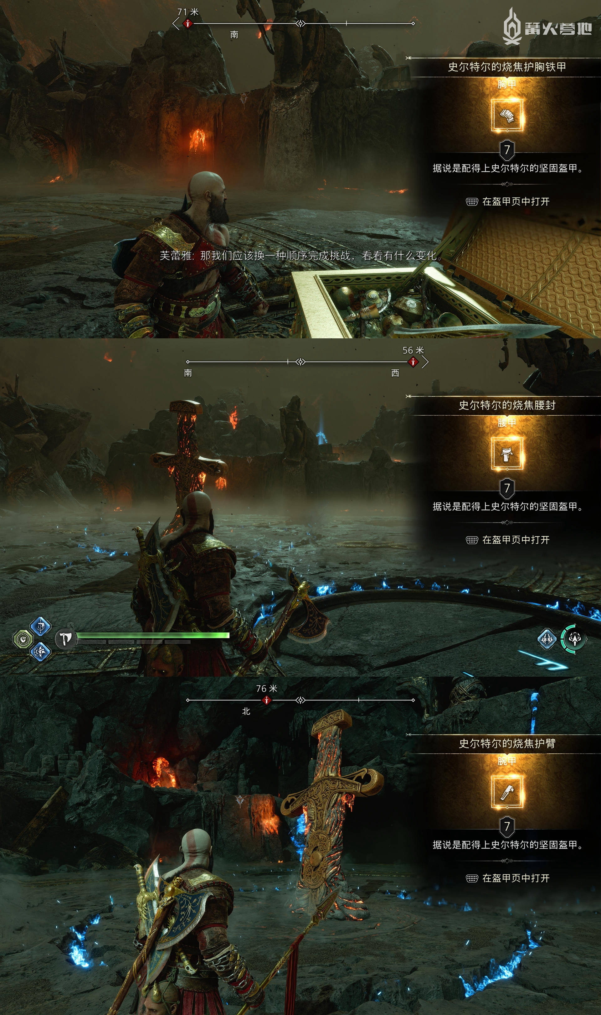 在「亚尔法海姆 - 下界」(地图显示是荒原,但东西是属于下界范围的),需要帮助这里的哈弗古法挣脱束缚,然后从打开的新通道离开,利用锁链撞开天花板的石板,可以看到前方有「传奇宝箱」,获得「胸甲 - 光辉肩带」。