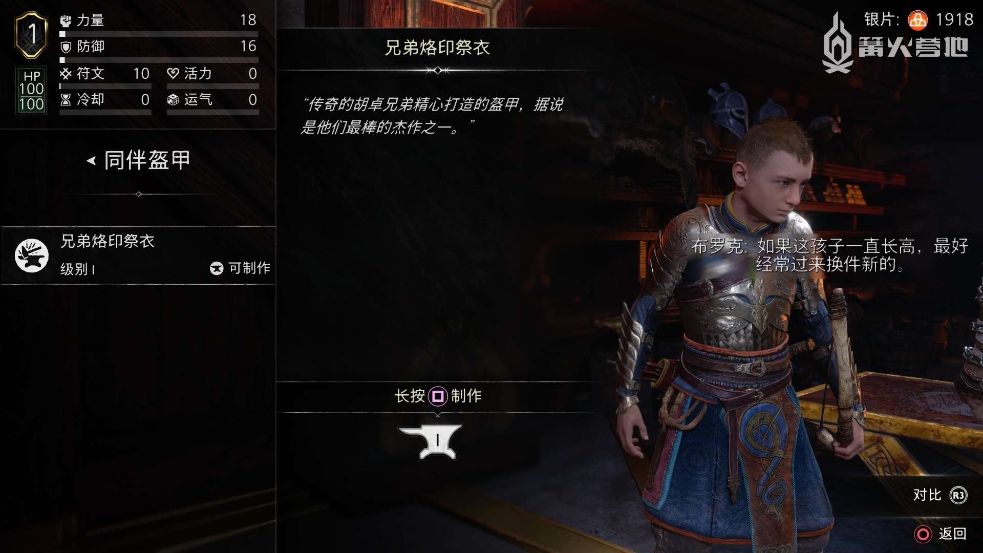 第一次来到商店后,会解锁制作「阿特柔斯盔甲 - 兄弟烙印祭衣」。