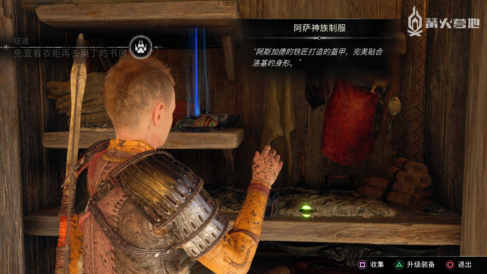 阿特柔斯关卡,在「约顿海姆 - 安格尔伯达的树屋」,可以在工具箱获得「阿特柔斯盔甲 - 巨人捍卫者外衣」。