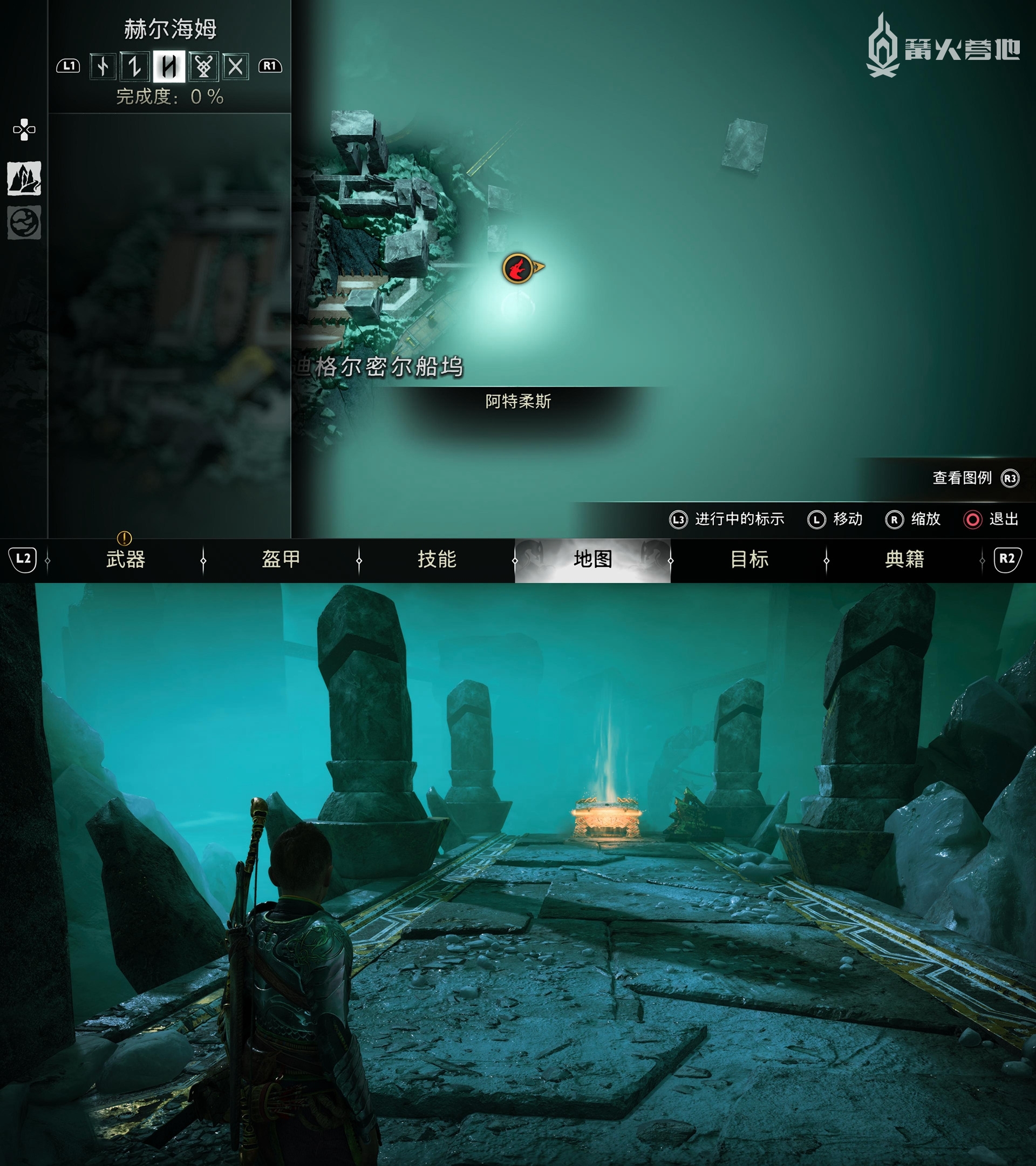 阿特柔斯关卡,在「约顿海姆」进入「伊狄的落水洞」后,下图岔路左转,跳到下方有「传奇宝箱」,可以获得「配件 - 符文强度」,但不计入 100% 统计。