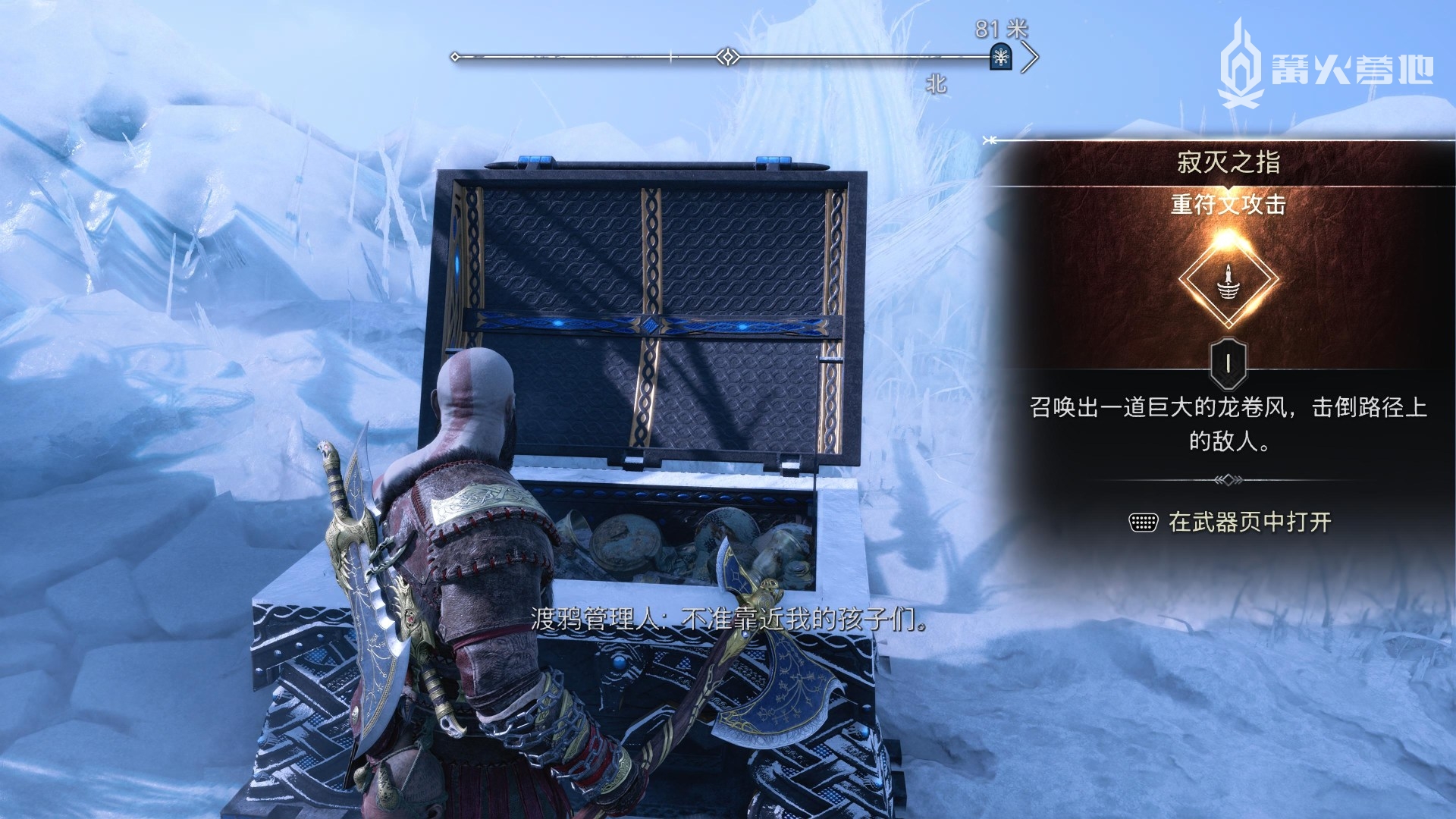 击打所有 48 个渡鸦后,来到「尼福尔海姆 - 渡鸦树」,在这里可以打开 6 个「传奇宝箱」,分别获得「腰甲 - 渡鸦泪腰封」「腕甲 - 渡鸦泪臂套」「胸甲 - 渡鸦泪护胸铁甲」「重符文攻击 - 索穆尔之息」「重符文攻击 - 陨星猛击」「重符文攻击 - 寂灭之指」。