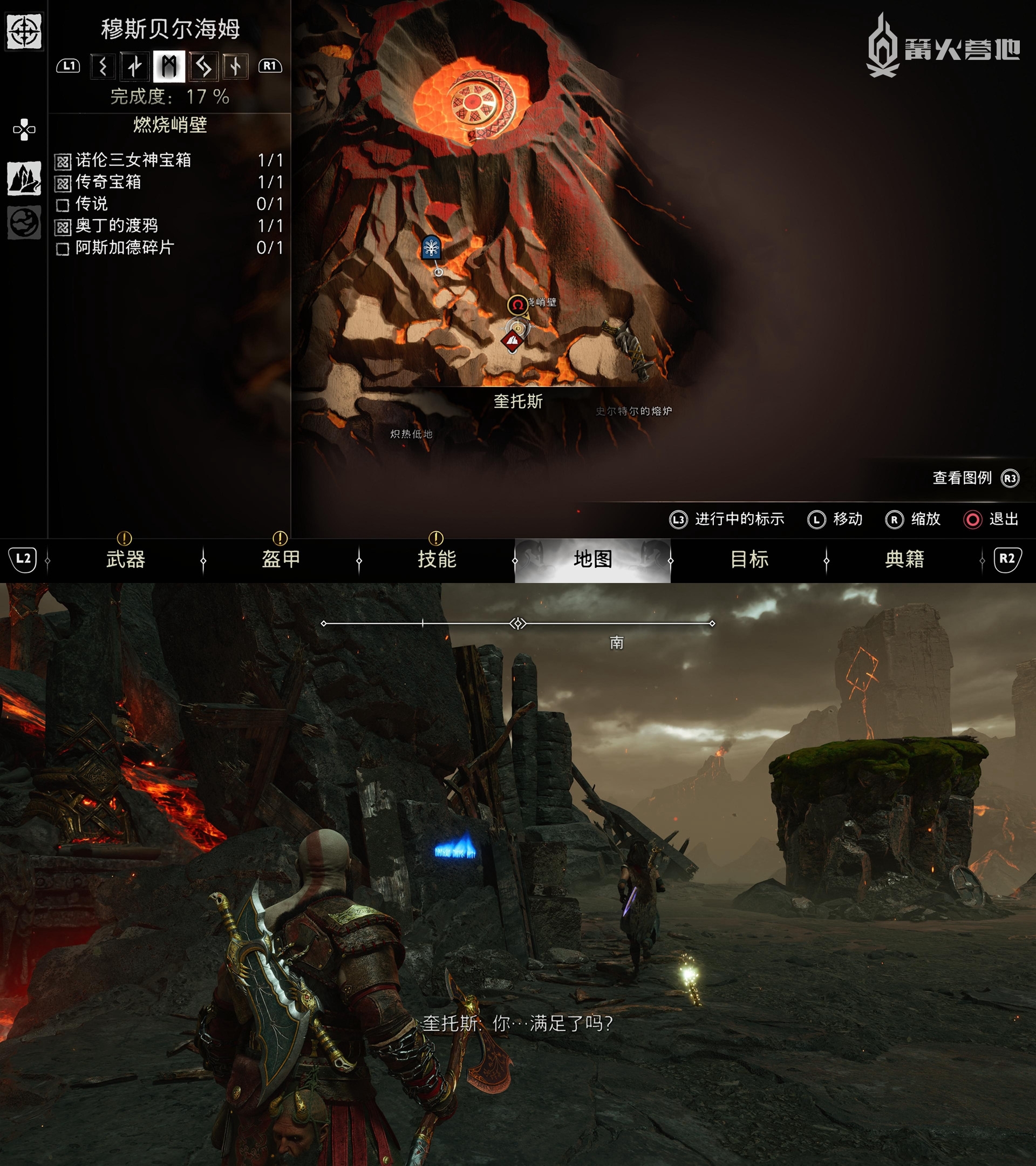 在「穆斯贝尔海姆 - 燃烧峭壁」,需要在通关后才能在下图位置找到「符文解读 - 英灵殿崛起」。