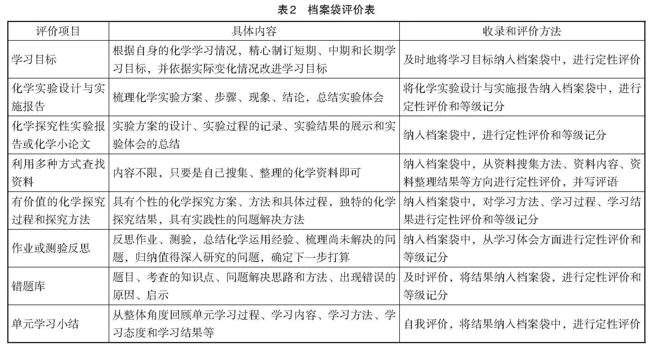 档案袋法是一种围绕某种目的而搜集资料反映学生学习过程和学习结果的评价方法。这种评价方法可以实现评价与教学的紧密结合,全面记录、展现学生的学习过程和发展情况,便于教师了解学生的成长轨迹,进而有针对性地进行增值评价,促使学生获得进一步发展。例如,为全面了解学生的发展情况,教师建立档案袋评价表(如表2),明晰评价项目、具体内容、收录和评价方法,并依据教学需要进行运用。