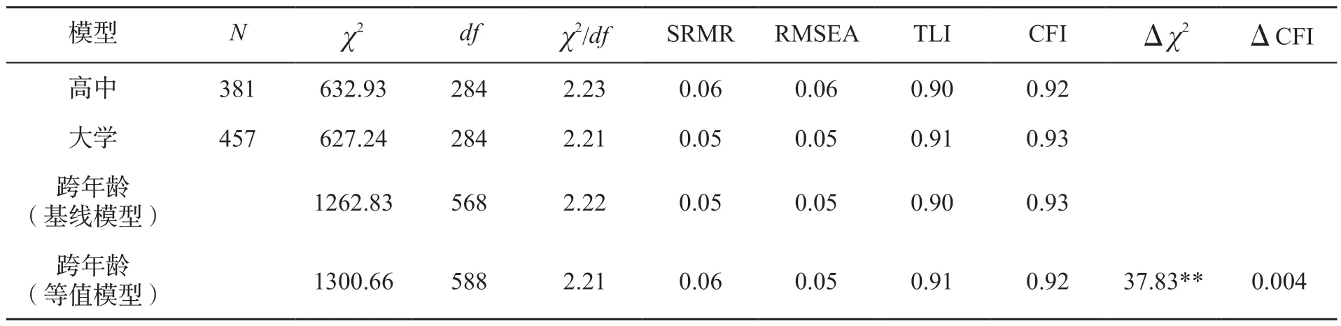 表4 VISA 中文版测量模型的跨年龄等值性检验(n3=838)