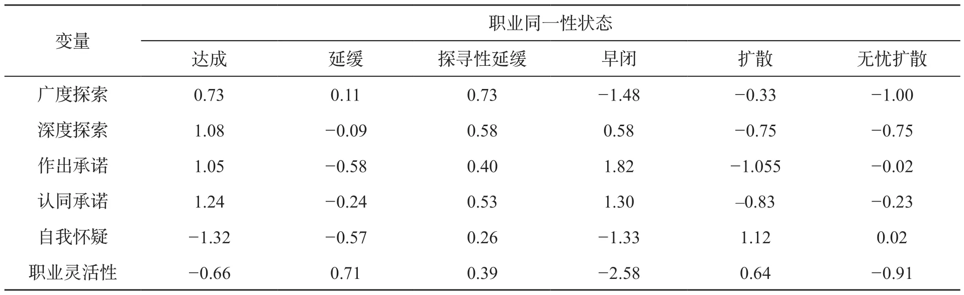 表5 职业同一性状态类型的聚类中心(n3=838)
