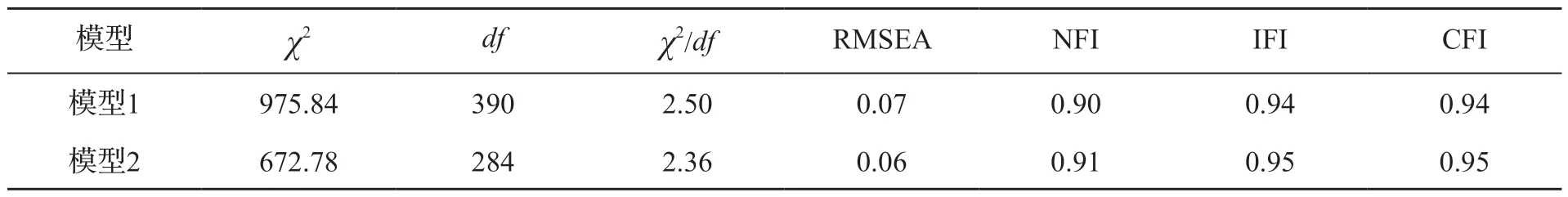 表2 验证性因素分析模型拟合指数(n2=333)
