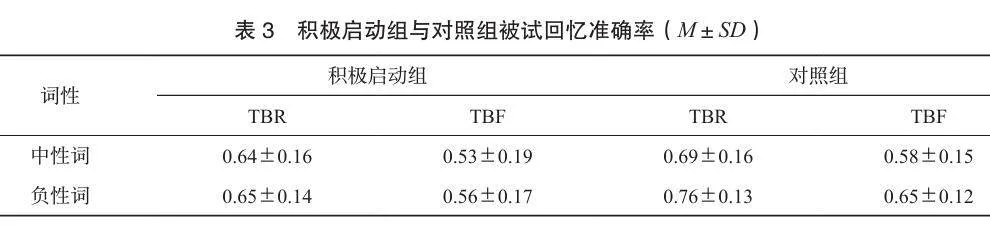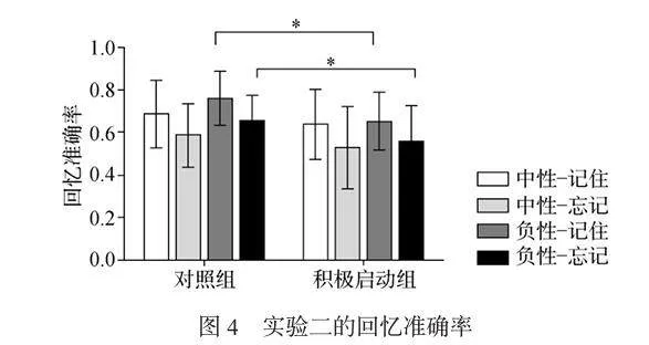 3 实验2:积极自我启动对负性记忆定向遗忘的影响