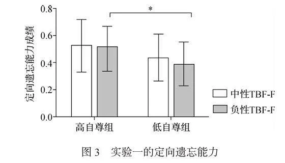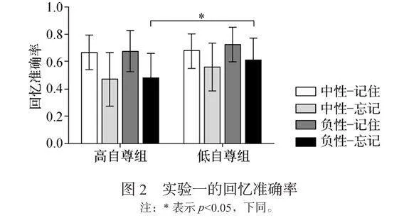 2 实验1:高低自尊个体在负性记忆定向遗忘上的差异